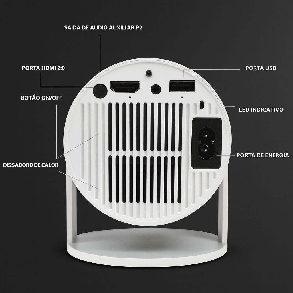 Disponível em variação de cores, o projetor se adapta ao seu estilo e ambiente, proporcionando ainda mais flexibilidade na escolha.